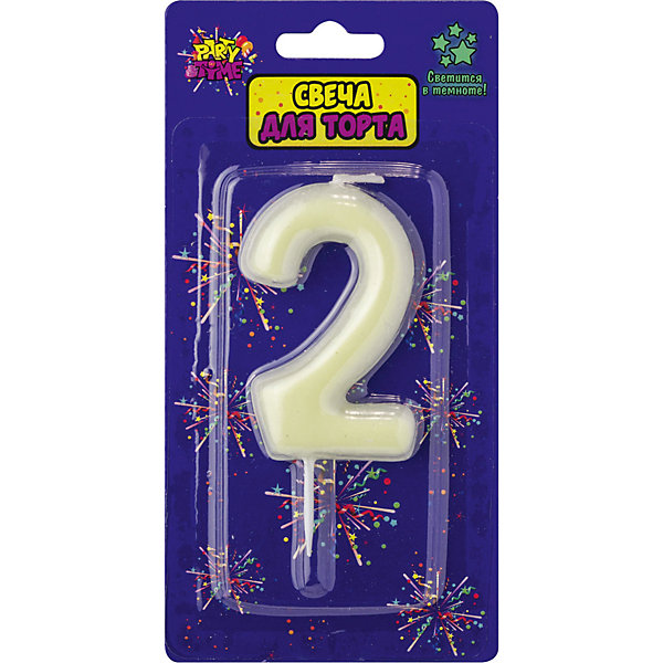 Однотонная свеча-цифра светится в темноте благодаря флюоресцентным свойствам. Дополнена шпажкой для удобства крепления на праздничный торт.