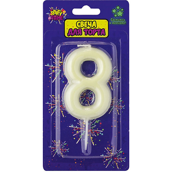 Однотонная свеча-цифра светится в темноте благодаря флюоресцентным свойствам. Дополнена шпажкой для удобства крепления на праздничный торт.