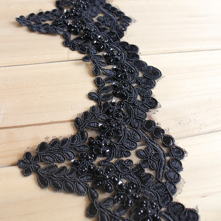 Sale by Yard black French embroidery Lace Trim with Beads Wedding bridal dress veil Lace accessory T023