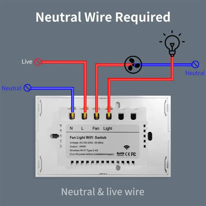 Фонарь управления умным домом Tuya, Wi-Fi, 5 скоростей, выключатель, тиристор, сенсорная панель, управление через приложение