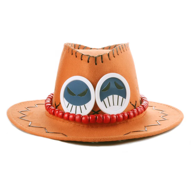 Ковбойская шляпа для косплея Portgas D Ace с ожерельем, оранжевая фетровая шляпа в стиле вестерн, костюмные шляпы, аксессуары для костюма на Хэллоуин с героями мультфильмов аниме