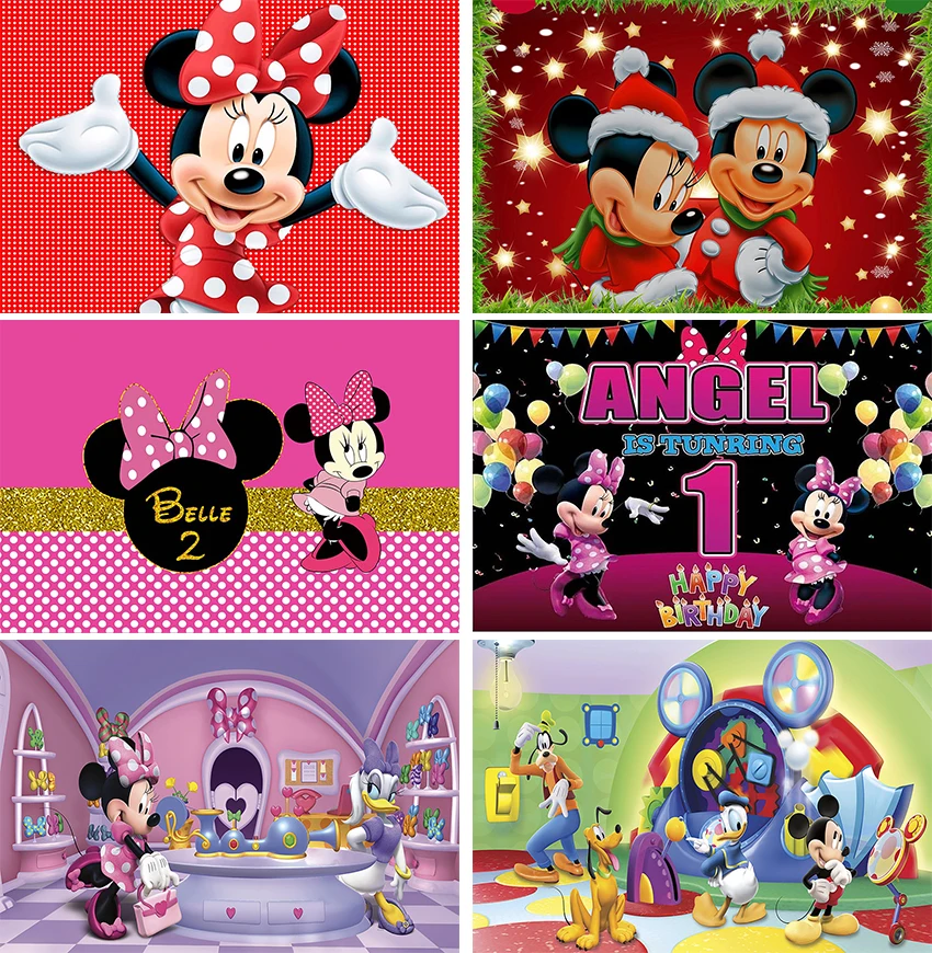 Фон для фотосъемки Минни Маус для детей 1-й 2-й 3-й день Рождения Декор для вечерние НКИ для девочек Розовое украшение для вечеринки в честь бу...