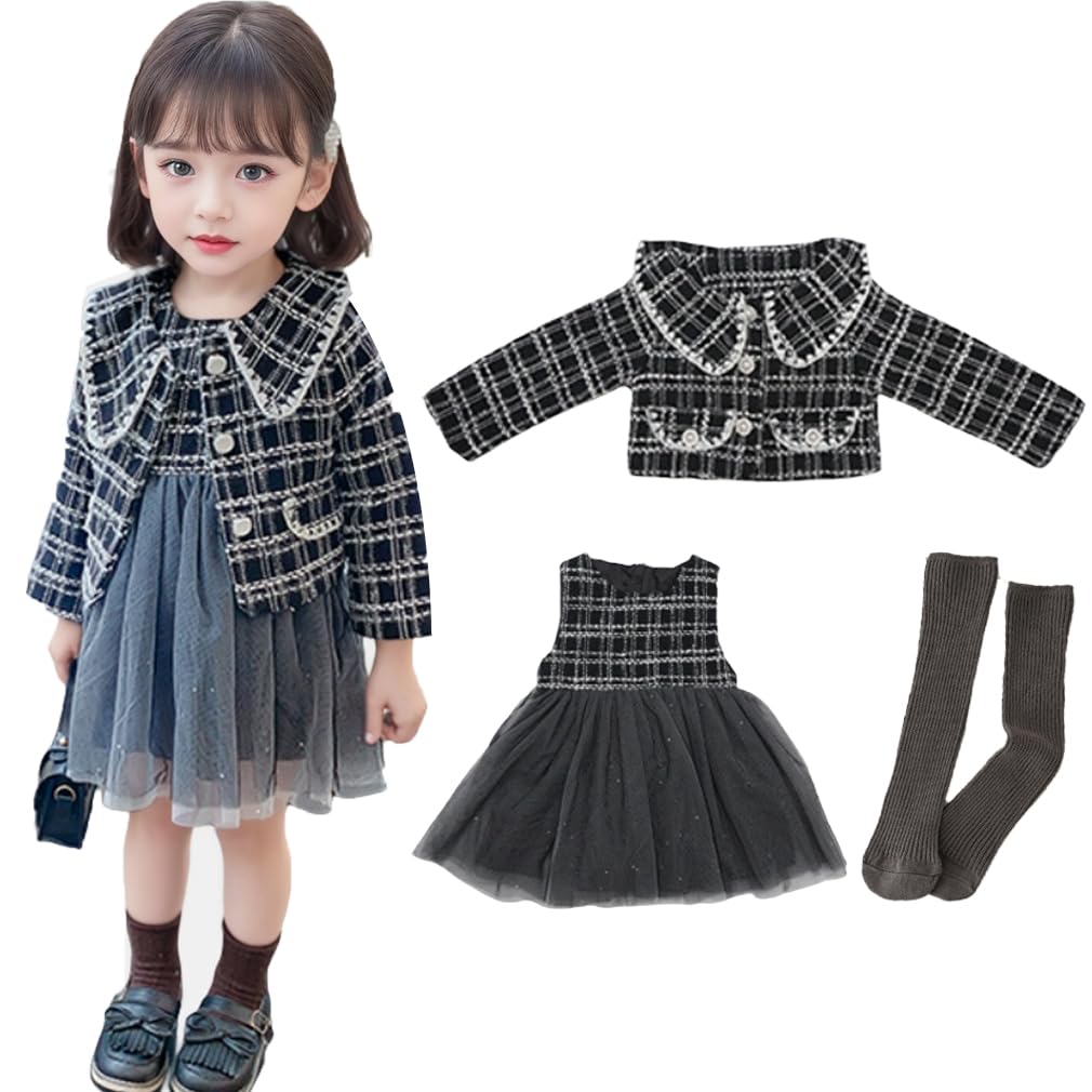 Формальное платье Клетчатый твид Идеально для поступления в детский сад, начальную школу и детский сад Комплект для девочек, Костюм, Церемонии, Ситигосан чёрный