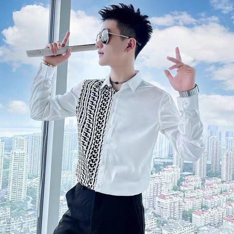 Формальные Прямые Темпераментные Рубашки с Пуговицами и Принтом, Отложным Воротником, Свободного Кроя, С Длинным Рукавом Sven Man, Асимметричная Мужская Одежда, Тонкая L белый