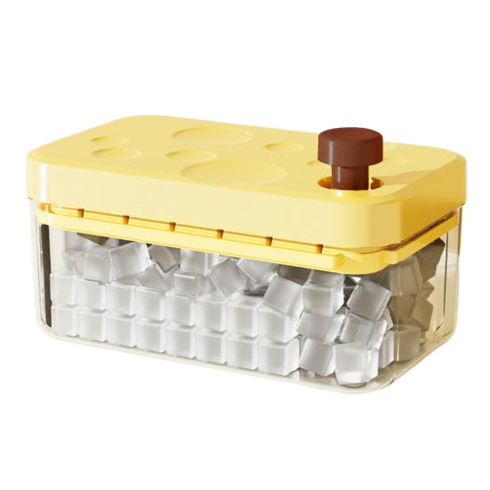 Форма для льда с крышкой и контейнером, большой вместимости, форма для льда для морозилки, штабелируемая, не содержит БФА Single Layer жёлтый