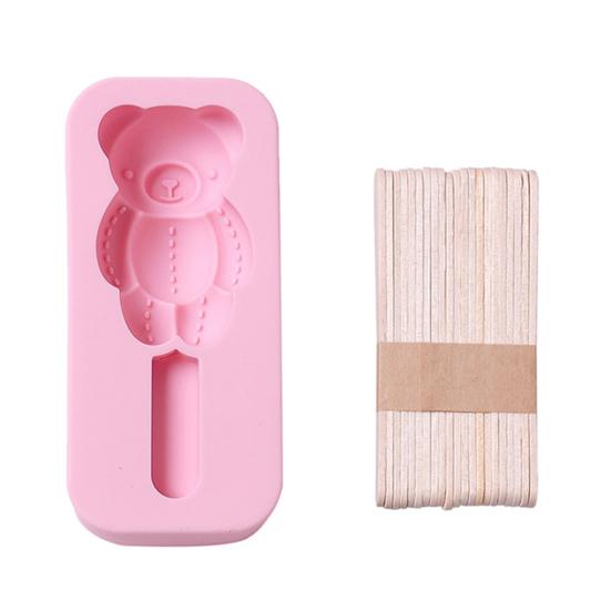 Форма для мороженого с 20 палочками, быстросъемная форма для мороженого из силикагеля в форме медведя и кролика на лето Bear розовый