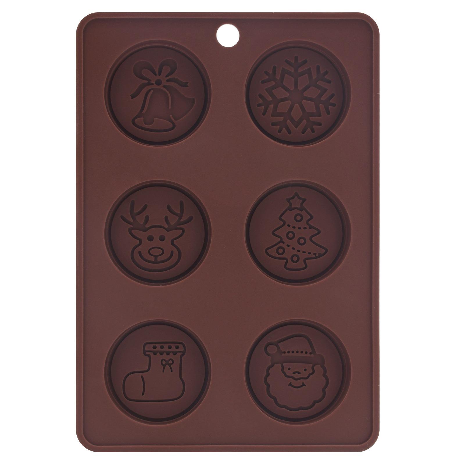 Форма для рождественского печенья, силиконовая форма для шоколада, 6 ровных форм для торта, форма для торта «Сделай сам» в виде колокольчика Санты и оленя, рождественской елки, снега коричневый