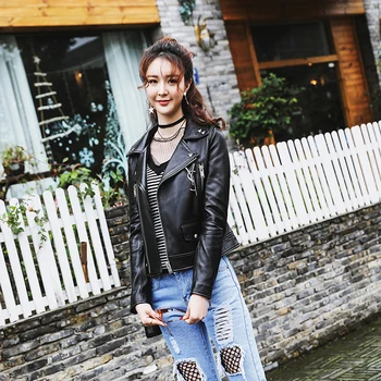 women's jackets goth women black pu faux leather jacket crop y2k metal button one shoulder halter punk style streetwear gothic coat, Black;brown