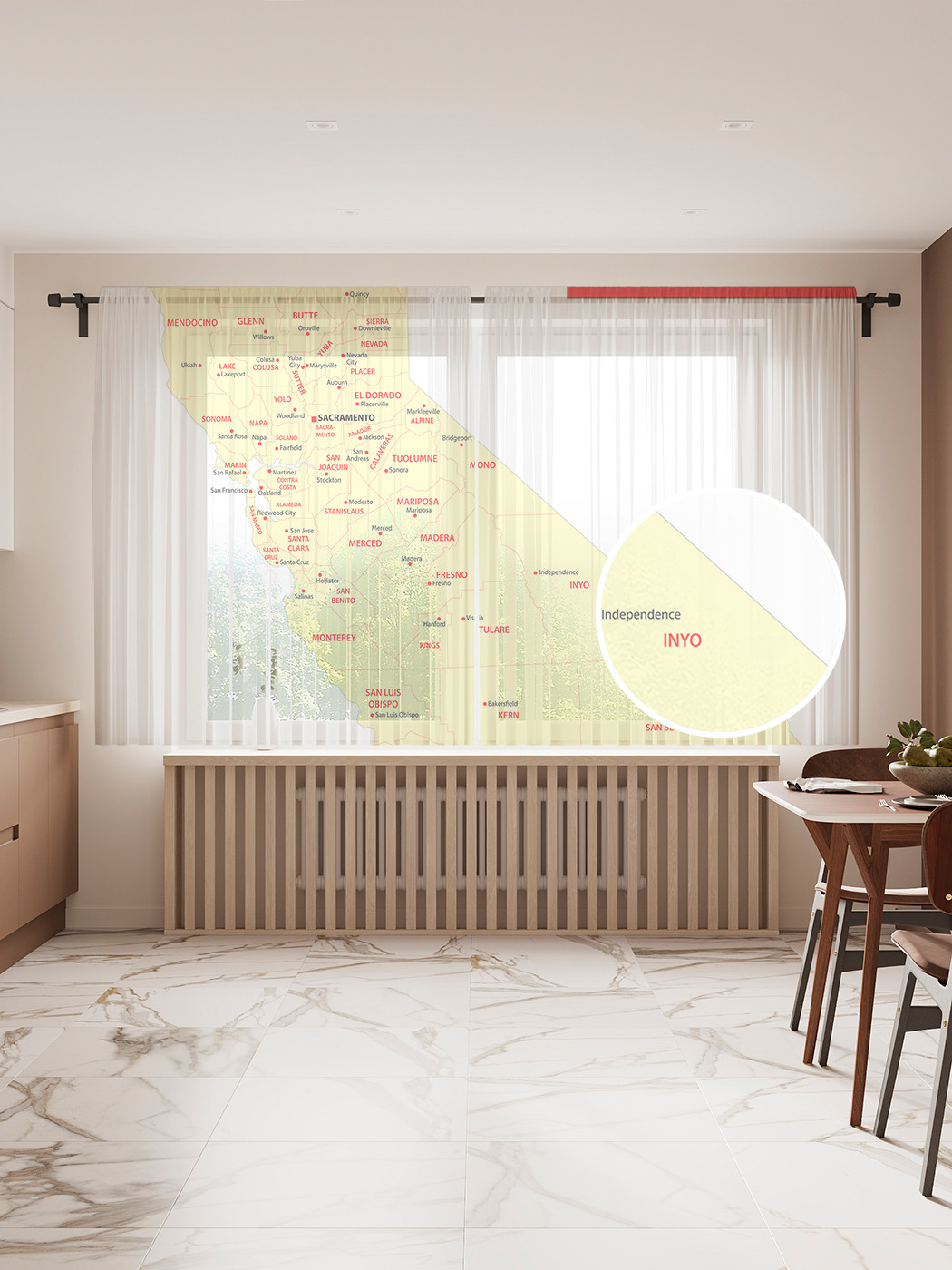 Фототюль "Карта Штат Калифорния", 145x180 см (2 полотна со шторной лентой + 50 крючков), Карта Штат Калифорния