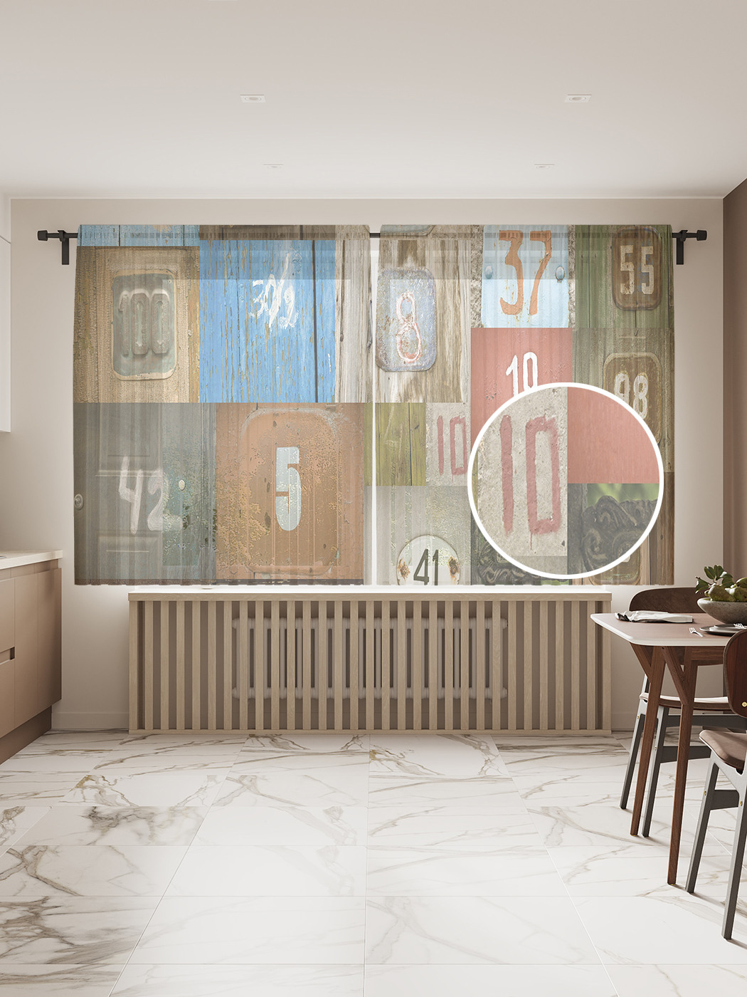 Фототюль "Квартирные номера", 145x180 см (2 полотна со шторной лентой + 50 крючков), Квартирные номера