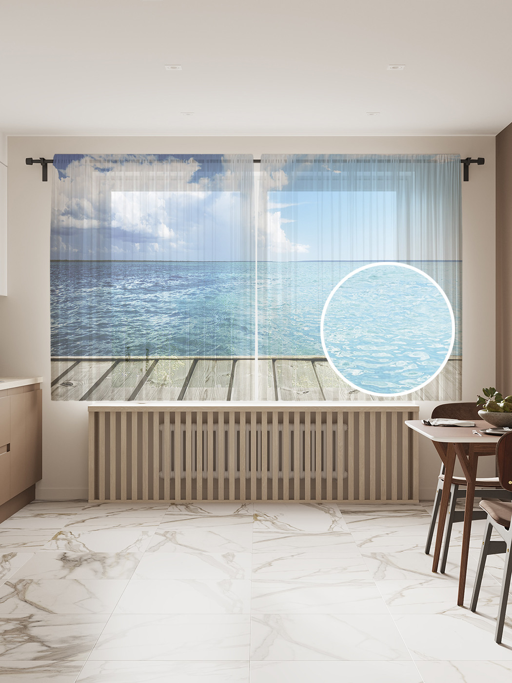 Фототюль "Морская облачность", 145x180 см (2 полотна со шторной лентой + 50 крючков), Морская облачность