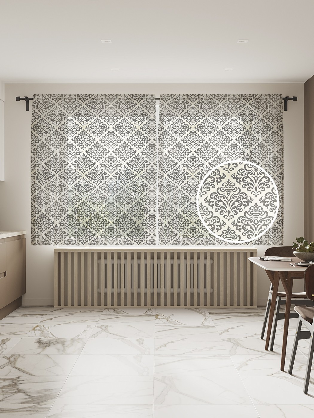 Фототюль JoyArty "Векторный Дамаск", 145x180 см (2 полотна со шторной лентой + 50 крючков), Векторный Дамаск