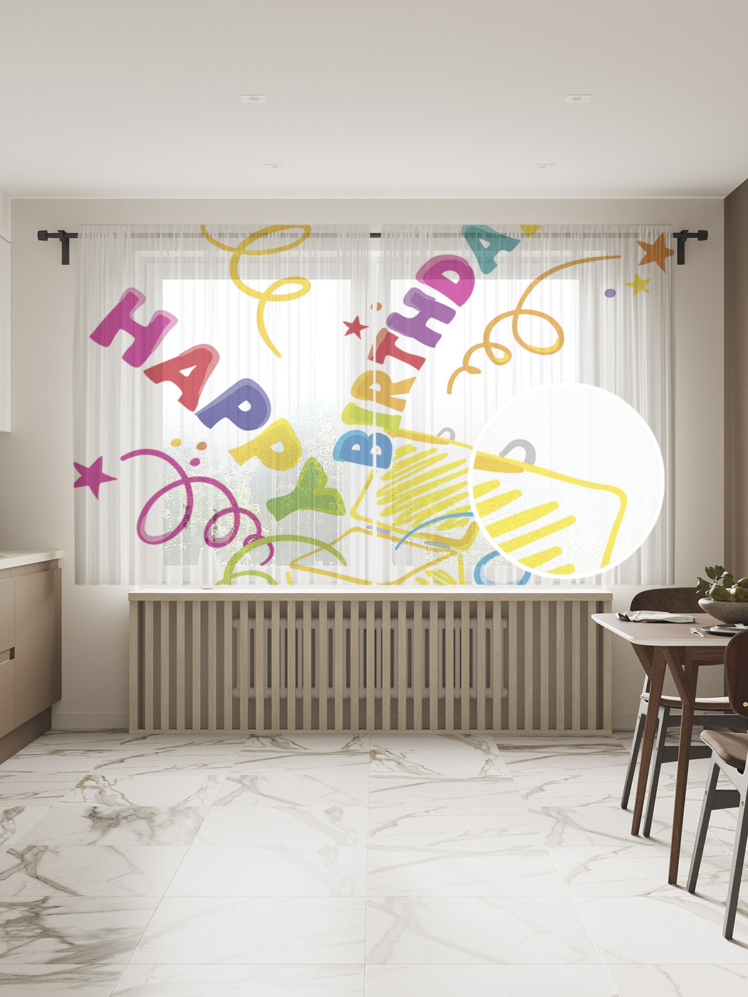Фототюль JoyArty "Веселого дня рождения", 145x180см (2 полотна с лентой + 50 крючков), Веселого дня рождения