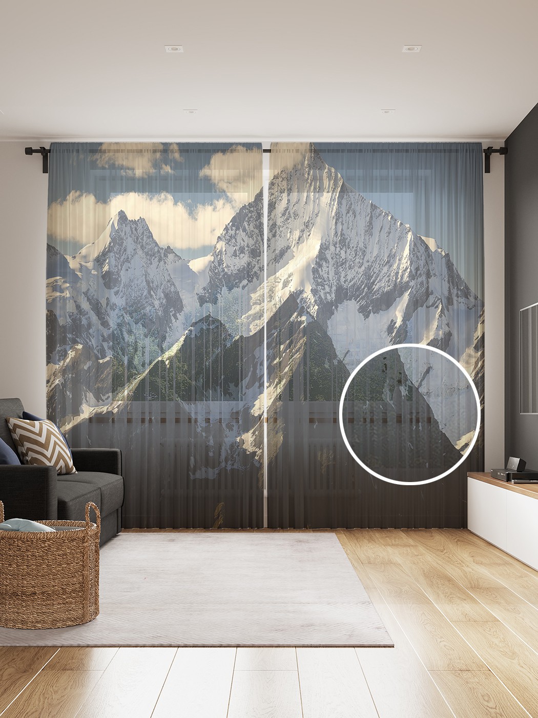 Фототюль JoyArty "Горное величие", 145x265см (2 полотна со шторной лентой + 50 крючков), Горное величие