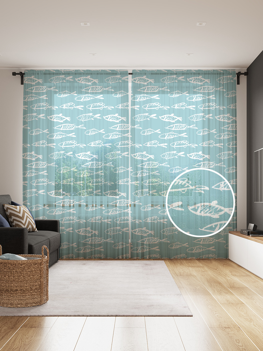 Фототюль JoyArty "История рыбок", 145x265см (2 полотна со шторной лентой + 50 крючков), История рыбок