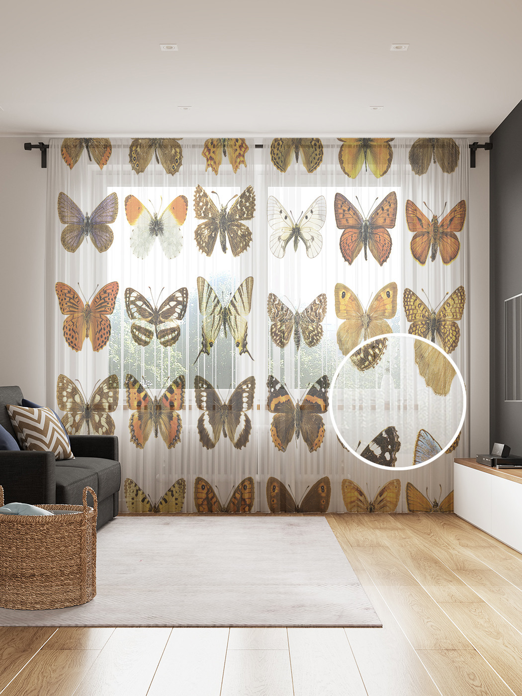 Фототюль JoyArty "Коллекция бабочек", 145x265см (2 полотна со шторной лентой + 50 крючков), Коллекция бабочек
