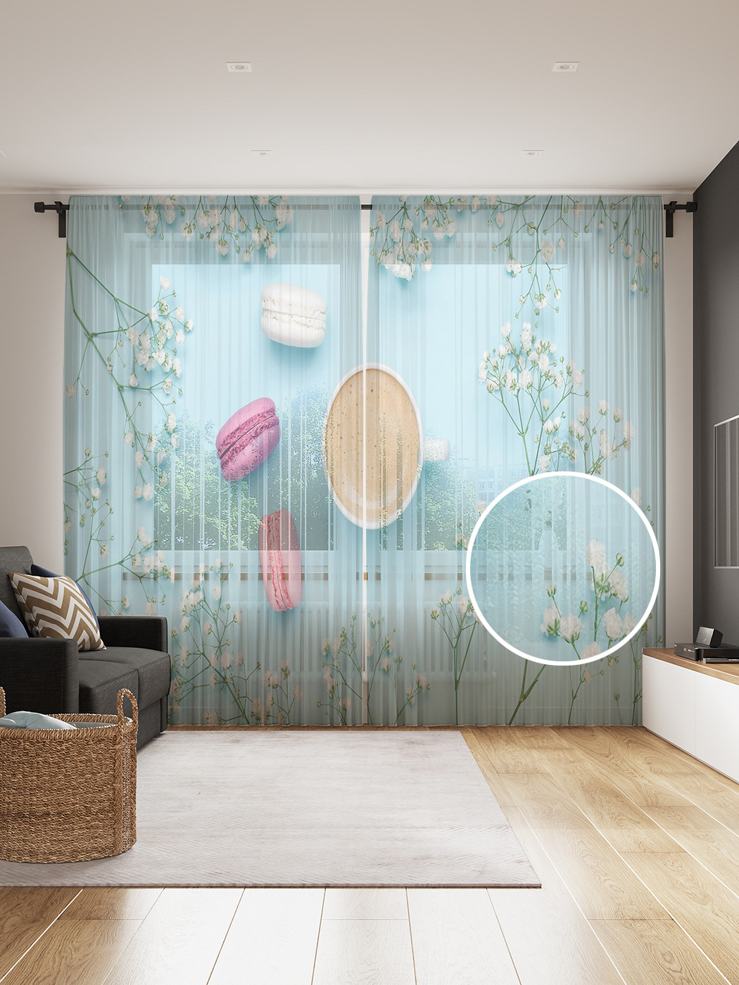Комплектация: два полотна 145х265 см., крючки – 50 шт. Материал: фатин (сетчатое полотно). Плотность: 54 гр/кв.м. Тюль с фотопечатью способен преобразить и украсить интерьер вашего дома. Изделие изготовлено из прочных волокон 100% полиэстера, отлично держит форму, легко гладится, не дает усадки и не растягивается при длительной эксплуатации. Тюль уже готов к использованию, возможно крепление на трубу или крючки, идущие в комплекте в количестве 50 шт. Благодаря широкому ассортименту фотопринтов, вы легко сможете подобрать тюль для кухни, спальни, детской комнаты или гостиной. Обращаем внимание, что из-за особенностей производства яркость рисунка может отличаться от изображения на сайте. Допустимо отклонение в размерах полотна в пределах 5 см.