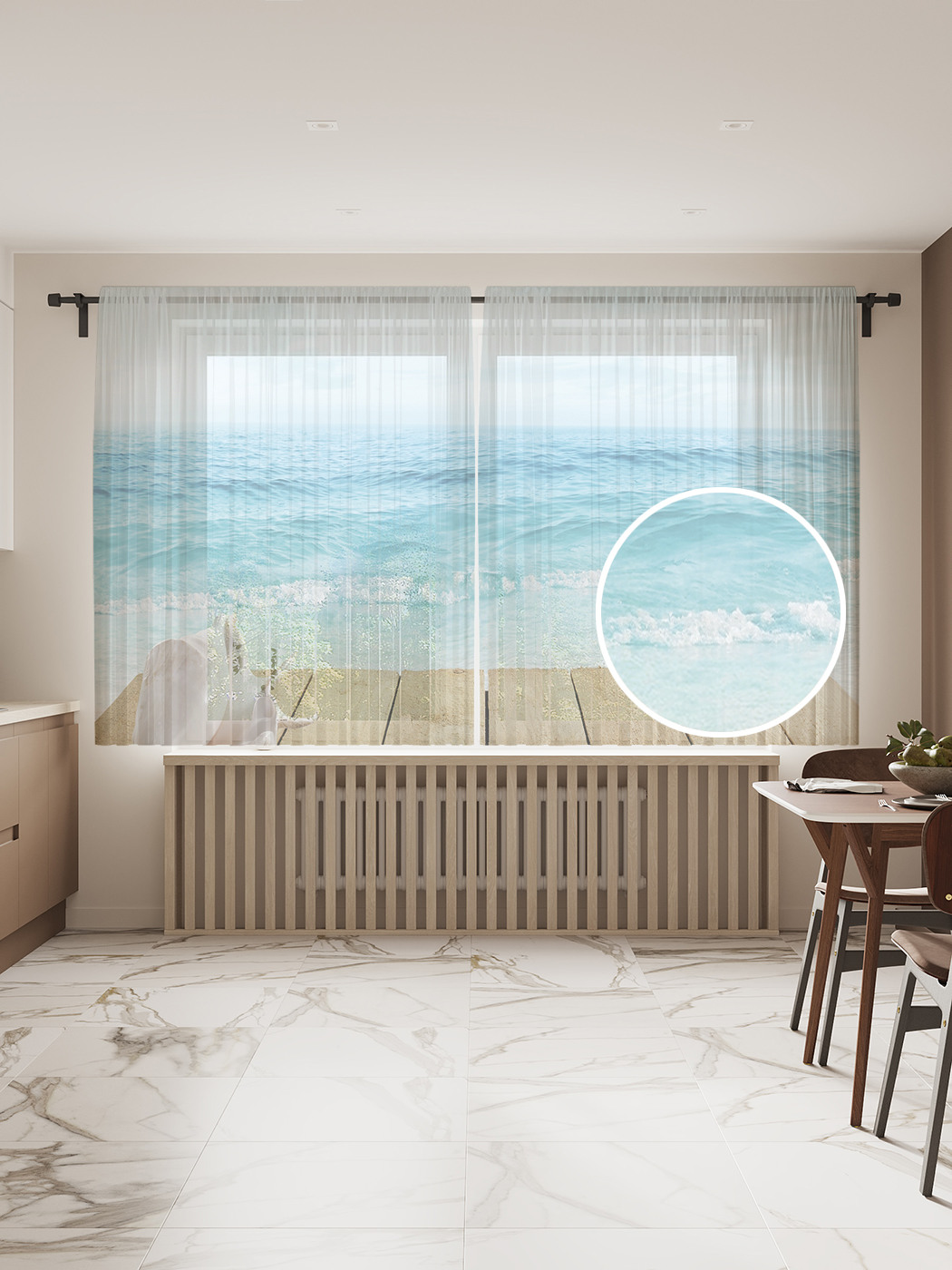Фототюль JoyArty "На волнистом причале", 145x180см (2 полотна с лентой + 50 крючков), На волнистом причале