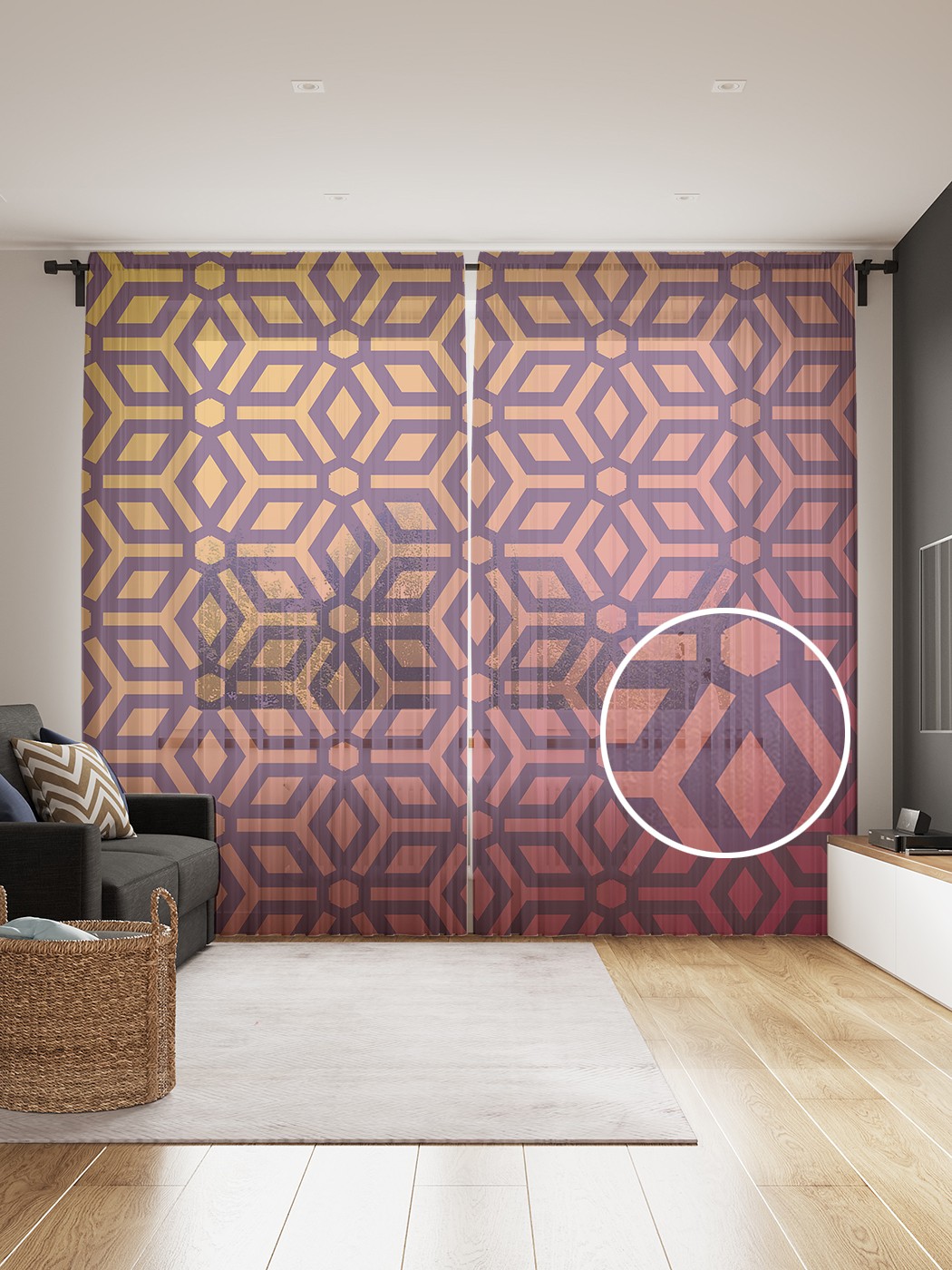 Фототюль JoyArty "Пламенная решетка", 145x265см (2 полотна со шторной лентой + 50 крючков), Пламенная решетка