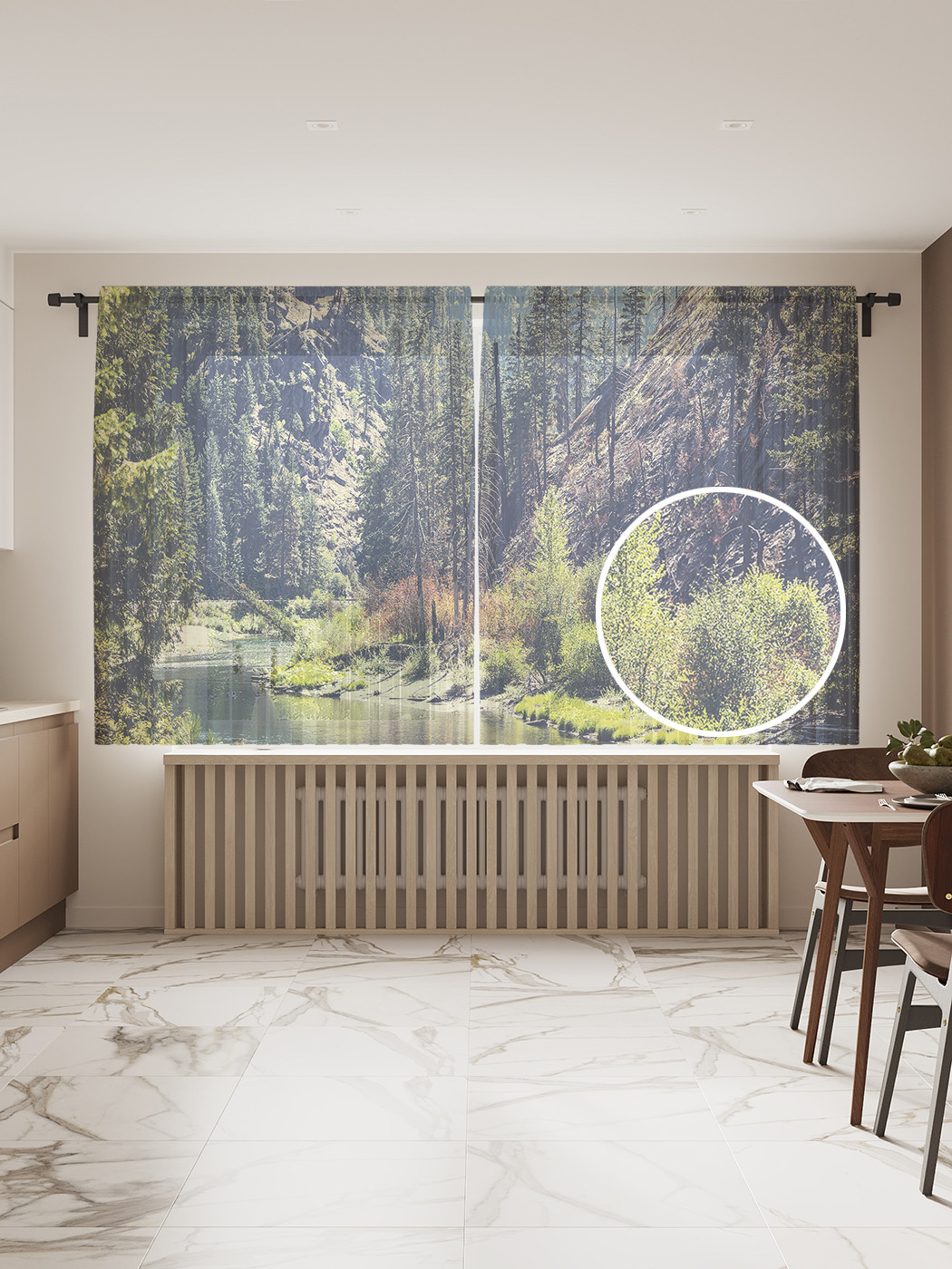 Фототюль JoyArty "Река, прячущаяся за лесами" 145x180см, 2 полотна, лента, 50 крючков, Река, прячущаяся за лесами