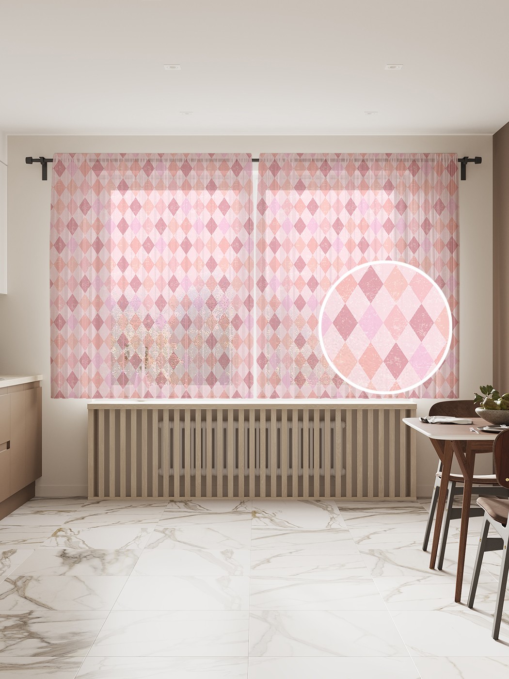 Фототюль JoyArty "Свежесть ромбов", 145x180 см (2 полотна со шторной лентой + 50 крючков), Свежесть ромбов