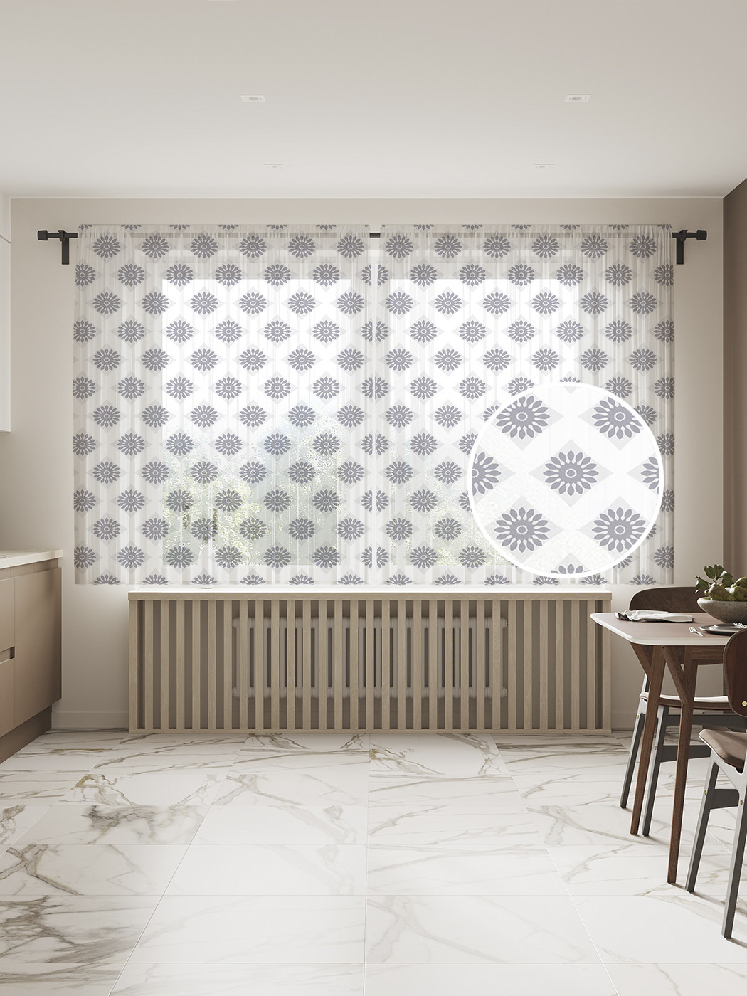 Фототюль JoyArty "Соцветия в ромбах", 145x180см (2 полотна со шторной лентой + 50 крючков), Соцветия в ромбах