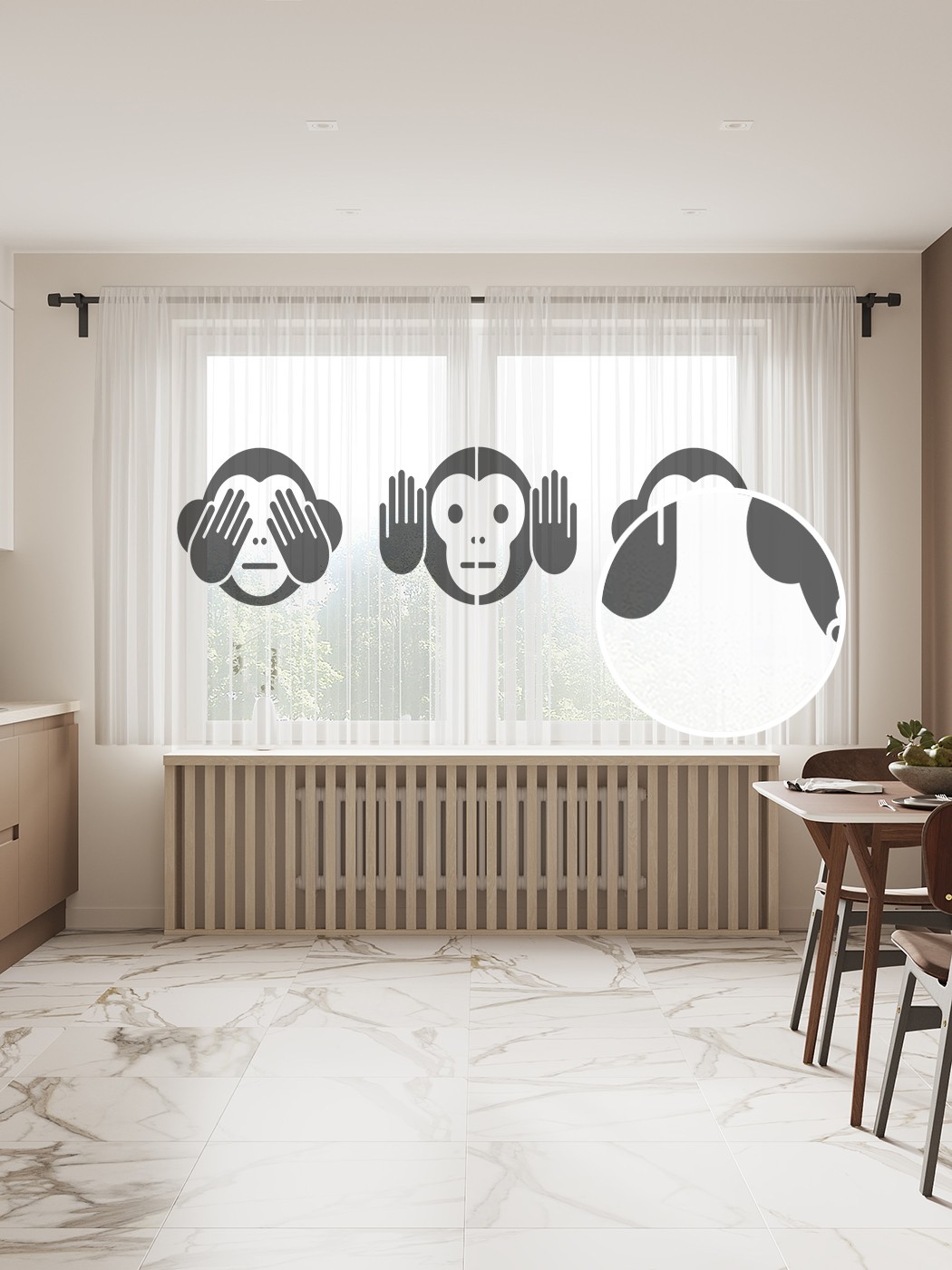 Фототюль JoyArty "Три обезьяны", 145x180 см (2 полотна со шторной лентой + 50 крючков), Три обезьяны