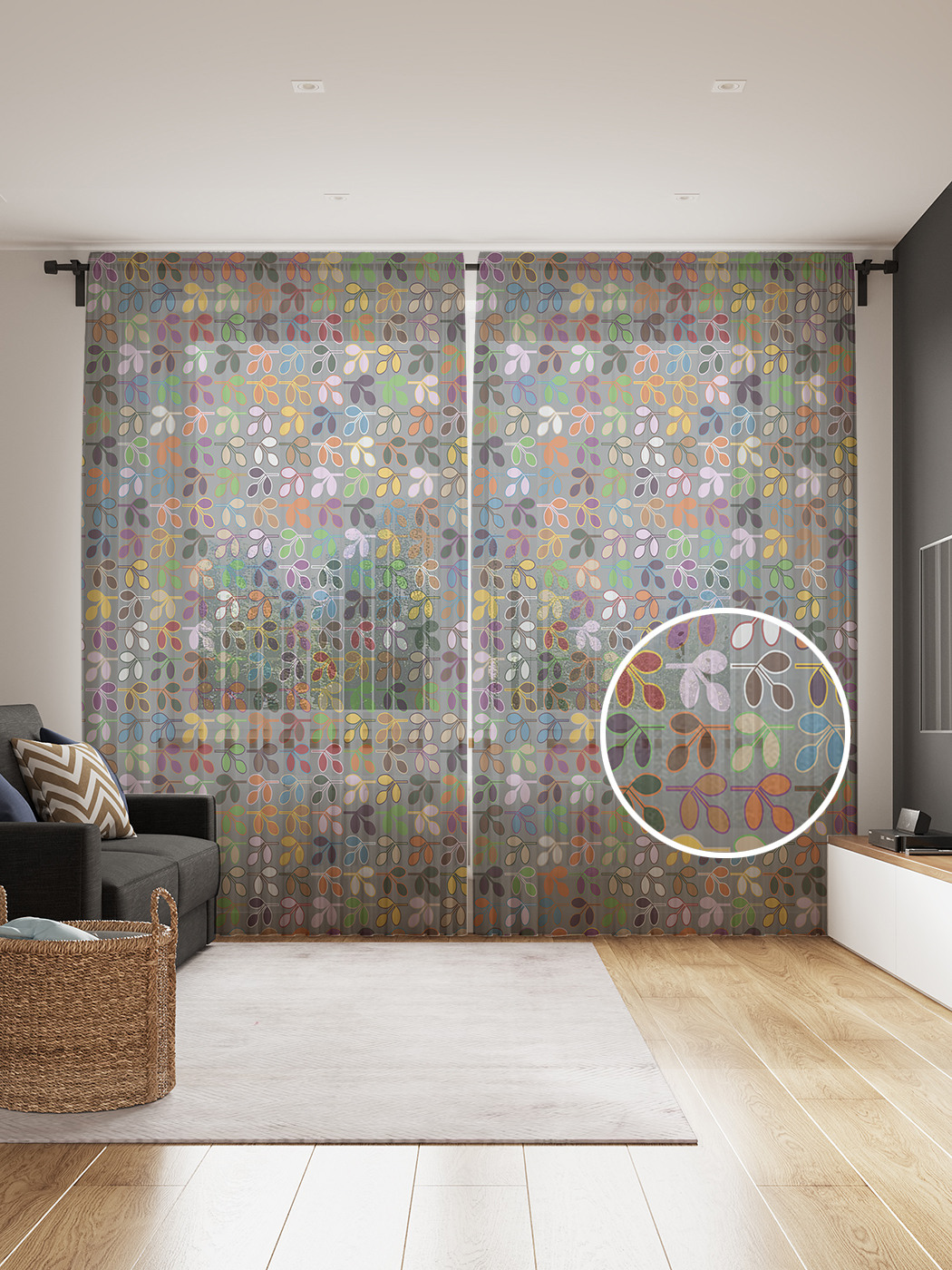 Фототюль JoyArty "Цветные листочки", 145x265см (2 полотна со шторной лентой + 50 крючков), Цветные листочки