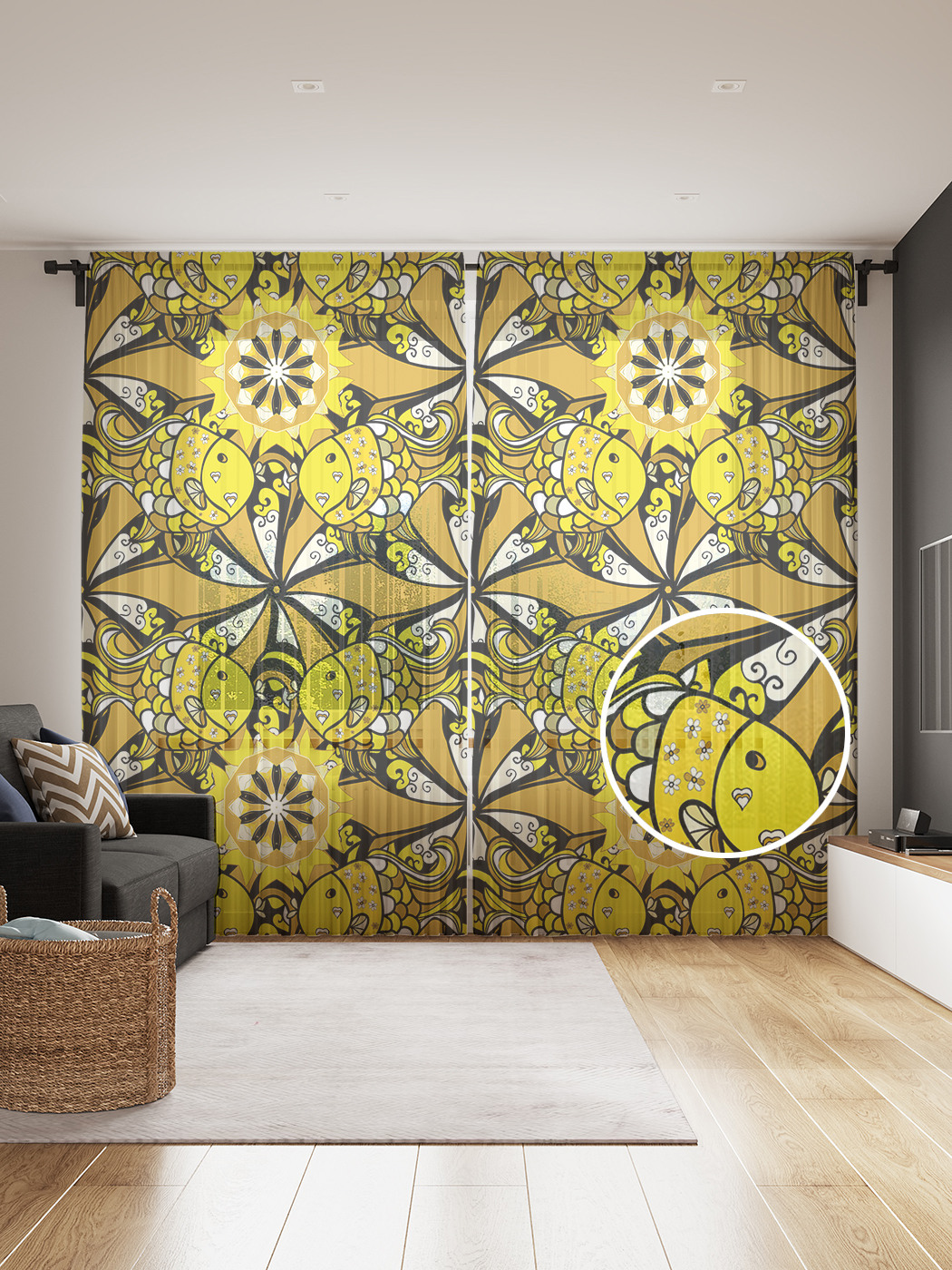 Фототюль JoyArty "Цветочные повторы", 145x265см (2 полотна со шторной лентой + 50 крючков), Цветочные повторы