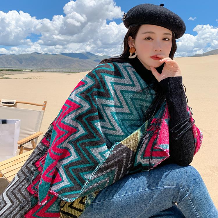Фото Вязаная шаль Цветная полосатая бахрома Кондиционер Накидка Женская Туристическая Сплит Плащ Партия 130*150CM