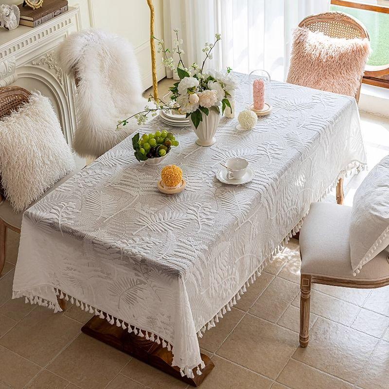 Французская Ретро Трехмерный Узор Высококлассная Скатерть для Обеденного Стола Домашняя Прямоугольная Скатерть с Бахромой Белая Накидка на Скатерть 90*90cm