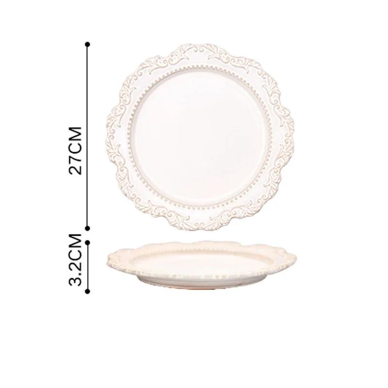 Французская барочная винтажная рельефная обеденная тарелка, скандинавские винтажные однотонные резные наборы тарелок и тарелок, бытовая кухонная утварь