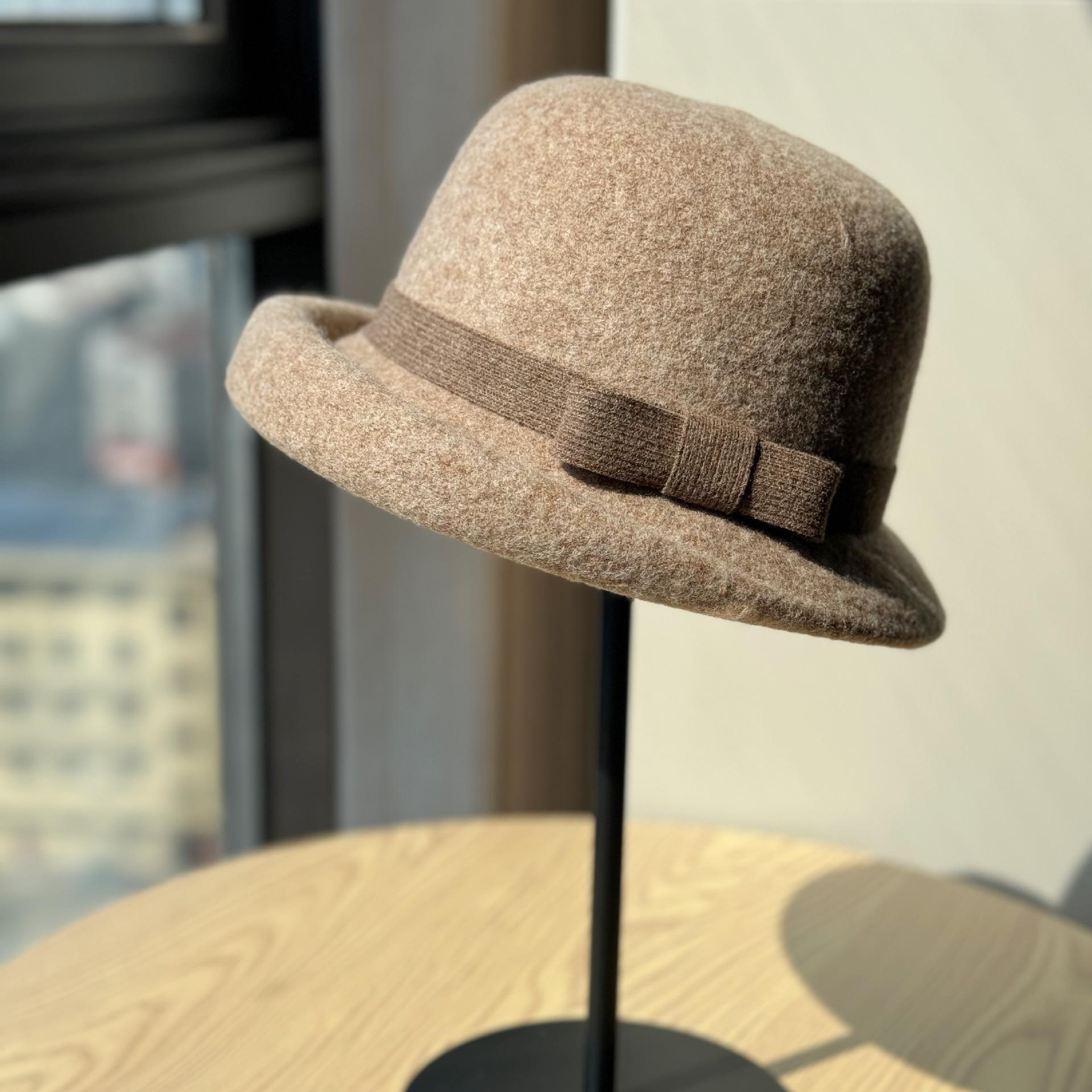Французская высококачественная шляпа-мама из кудрявой шерсти для женщин, ретро-бант, шляпа рыбака, осенне-зимняя шляпа в богатом стиле Adjustable