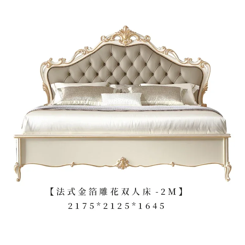 Французская кожаная кровать из цельного дерева, большая плоская двуспальная брачная кровать ручной работы в европейском стиле для главной спальни
