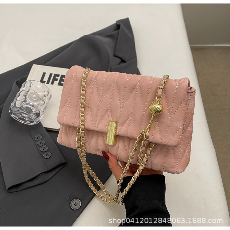 Французская мода люкс сумка подмышку женская 2025 новая маленькая сумка-мессенджер с ромбами в стиле «маленький ароматный ветер» на цепочке, повседневная на плечо розовый