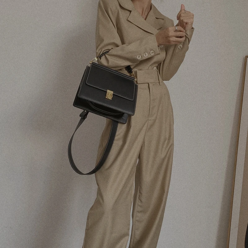 Французская нишевая брендовая осенне-зимняя новая простая женская сумка через плечо с кольцевым замком высокого качества из натуральной к...