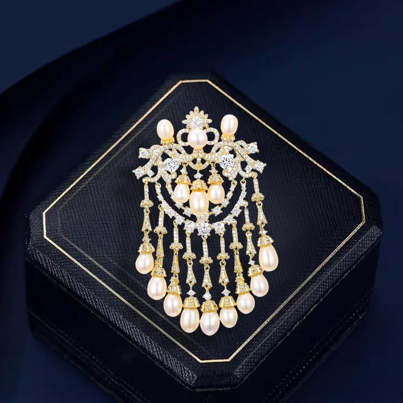 Французская ретро-тяжелая промышленность, ручная инкрустация пресноводным жемчугом, бахрома, брошь в стиле суда, элегантная брошь в виде пальто для женщин