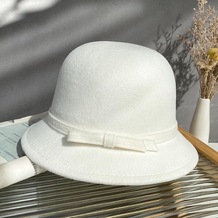 Французская шерстяная шляпа-ведро женская ретро осенне-зимняя элегантная шляпа-цилиндр белая шляпа-бассейн с бантом ONE SIZE