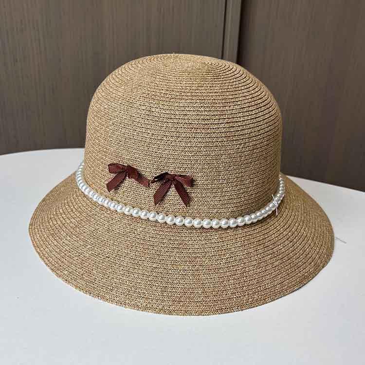 Французская элегантная шляпа-цилиндр, летняя пляжная шляпа с защитой от солнца, женская соломенная шляпа с жемчужным узлом average size