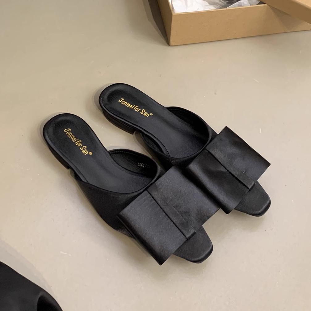 Французские атласные туфли-баотоу на полупальцах, женская летняя обувь для ношения с юбкой, темпераментные, на одном педале, ленивые мюли 39