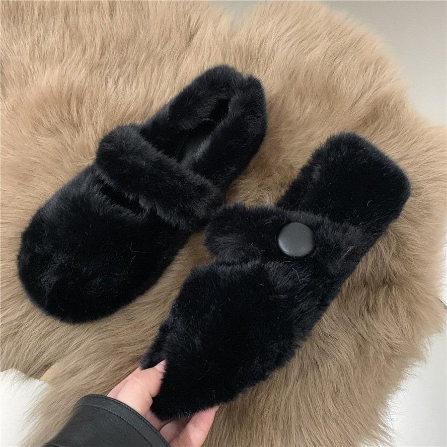 Французские белые туфли на плоской подошве, пушистые туфли, женская обувь, маленькие ароматные плюшевые туфли на весну и лето, новые теплые плюшевые хлопковые туфли 40 чёрный