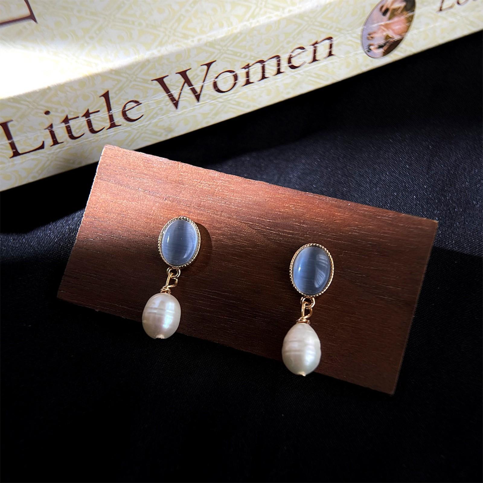 Французские нежные серьги «Кошачий глаз» из стекла, элегантные, темпераментные, с натуральным жемчугом, серьги класса люкс One Size