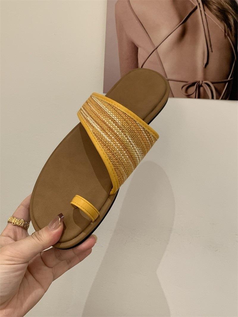 Французские плетеные шлепанцы на одно слово женские 2025 новая летняя обувь в римском стиле пляжная обувь сандалии на плоской подошве 40 жёлтый