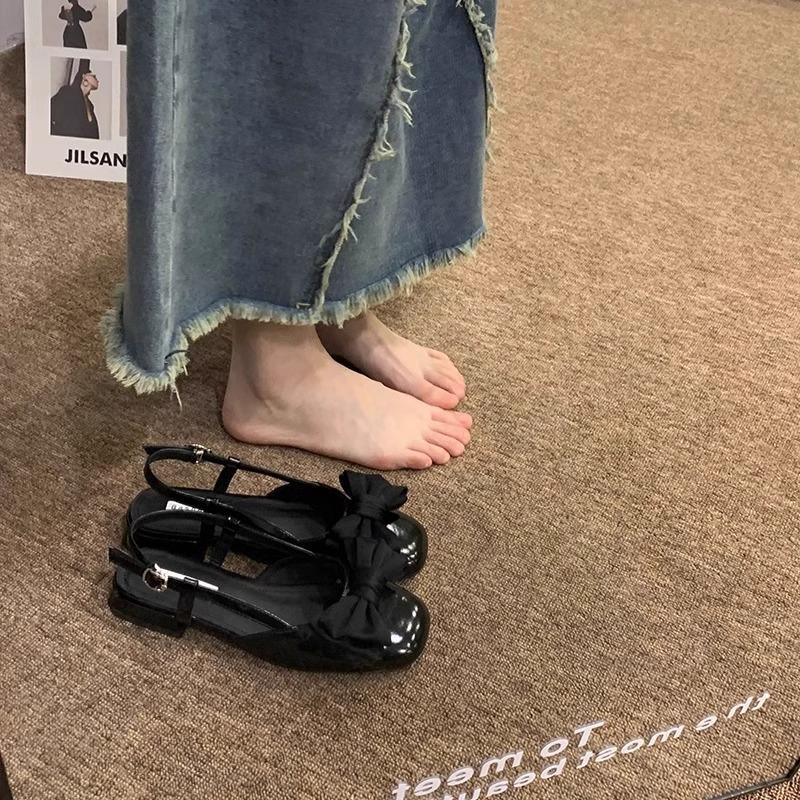 Французские ретро сандалии с сумкой на носке женские 2025 лето новая красная бабочка одинарная обувь сказочный стиль на плоской подошве маленькие кожаные туфли 40 чёрный