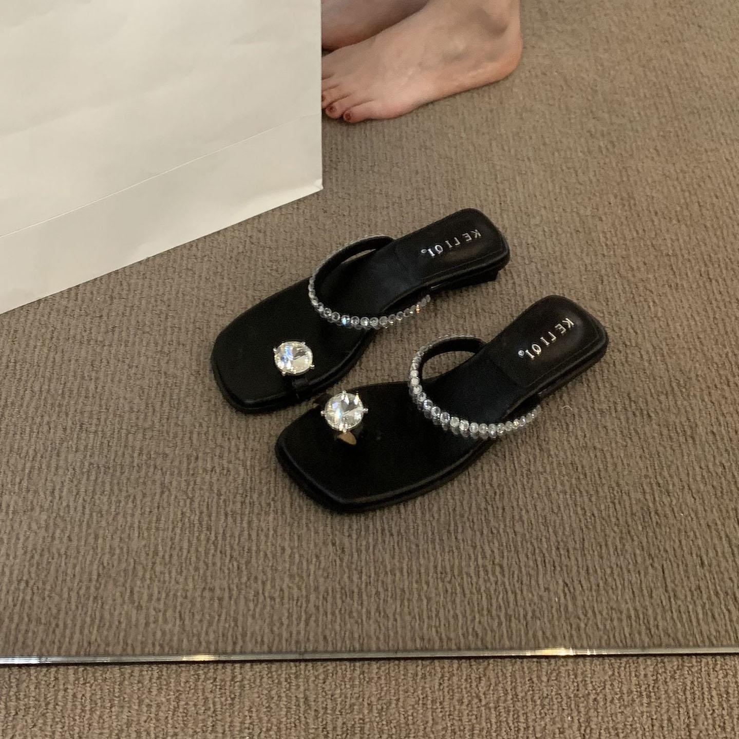 Французские сандалии-шлепанцы с квадратным носком и стразами, сказочная обувь 2026, летняя уличная обувь, темпераментные серебристые сандалии, изысканная и щедрая женская обувь 39