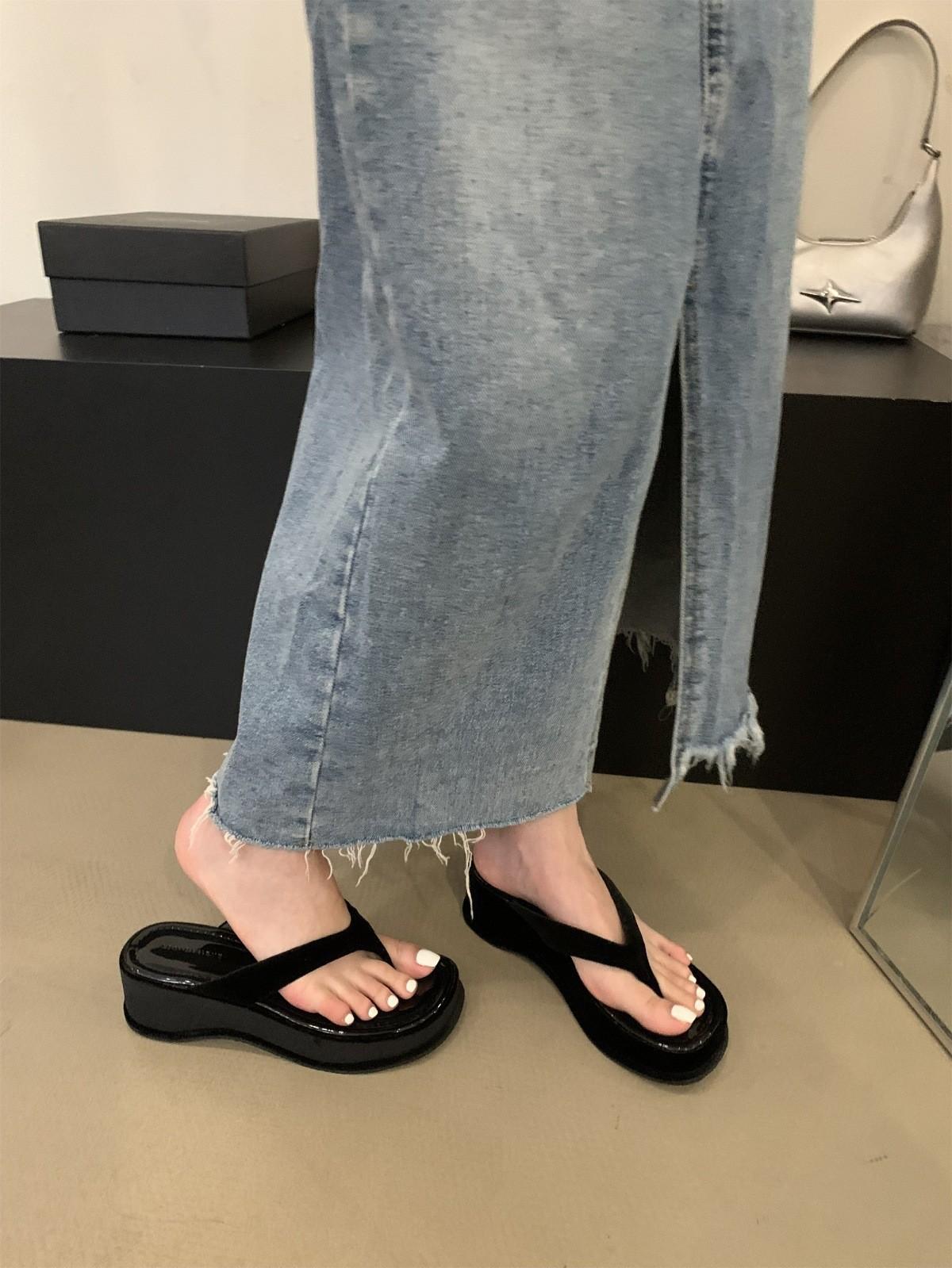 Французские шлепанцы на платформе, женская верхняя одежда, тапочки-маффины, лето 2025, новые модные босоножки на танкетке 40 чёрный