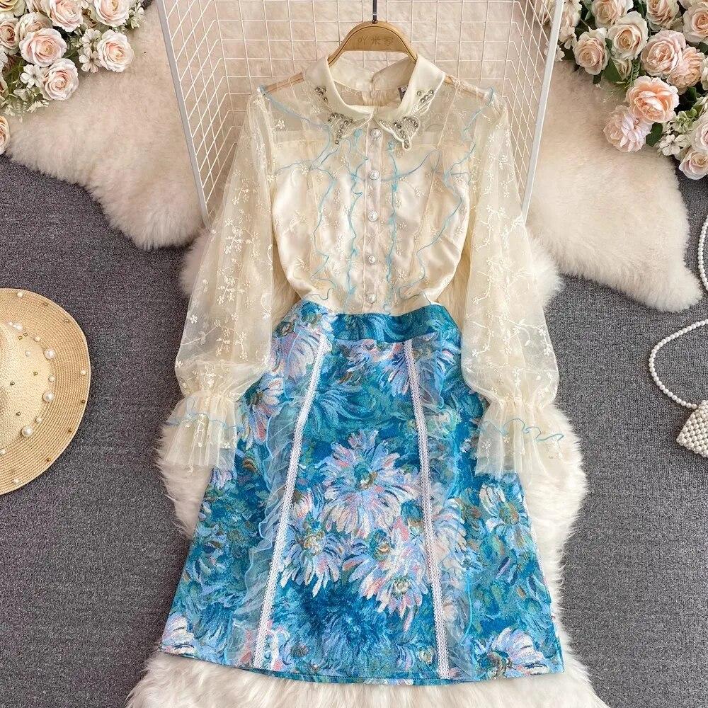 Французские элегантные сетчатые жаккардовые платья с цветочной вышивкой, женские роскошные короткие платья с бисером для вечеринки, дня рождения
