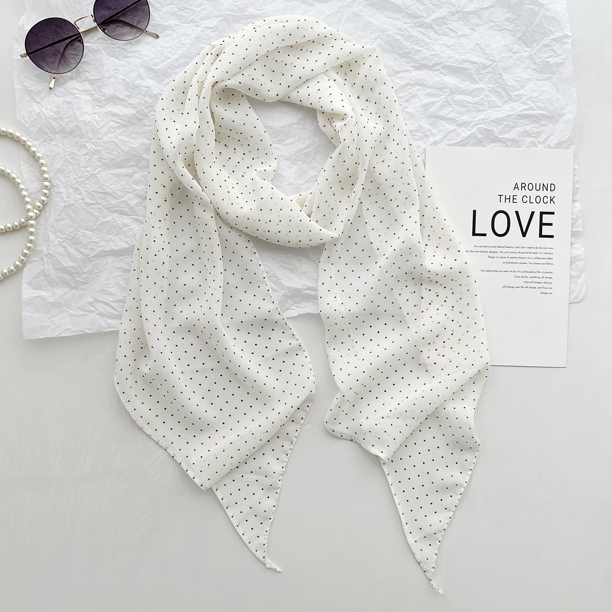 Французский ленивый стиль черный в горошек длинный шелковый шарф легкая роскошь ретро высококлассный темперамент тонкий шарф повязка для волос 180cm