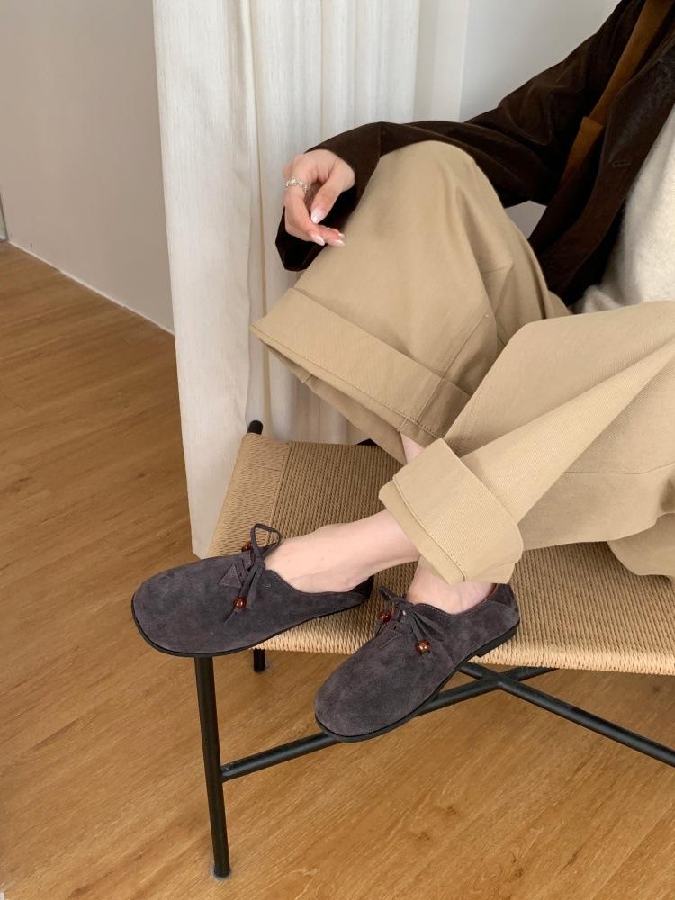 Французский ретро-стиль Birkenstock матовая коровья кожа первого слоя 2025 новые мори однопедальные мягкие подошвы на шнуровке лоферы 39