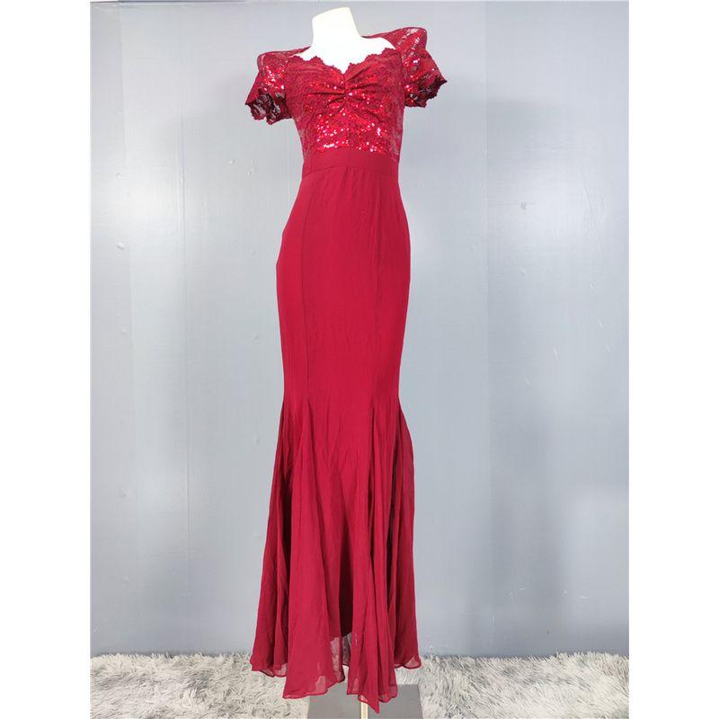 Французский стиль Высокая Холодная Богиня Красная ковровая дорожка Ведущая Ежегодная вечеринка Вечеринка Квадратный вырез Пайетки Блестящий Шифон Пэчворк Формальное платье Вечерняя одежда Burgundy S